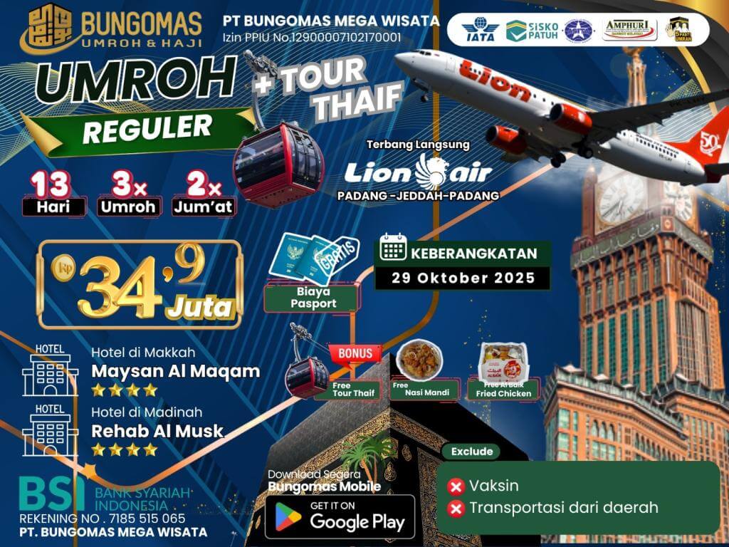 291025 Reguler 13 Hari 29 Oktober 2025 (Padang) Free Pasport